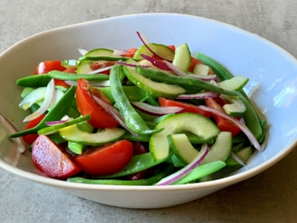 Red onion, cucumber and bean salad